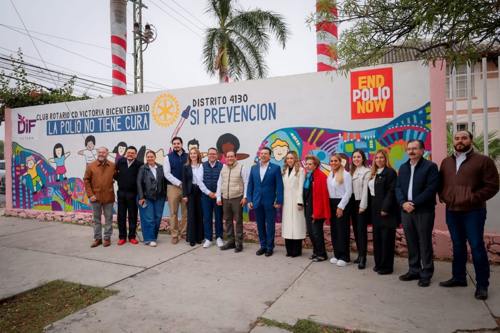 Ciudad Victoria, Tamaulipas 2 de diciembre 2025. – El DIF Victoria, encabezado por su presidenta Lucy de Gattás, presentó en sus instalaciones el mural “End Polio Now”, realizado en colaboración con el Club Rotario Ciudad Victoria Bicentenario como parte de la campaña global de sensibilización sobre la importancia de la prevención y la vacunación contra la poliomielitis.