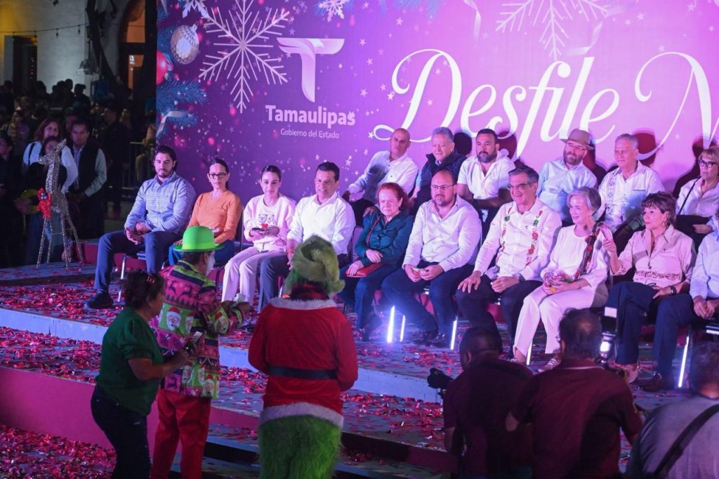 Cd. Victoria, 8 diciembre 2025. – El alcalde Eduardo Gattás Báez y su esposa Lucy de Gattás, participaron en el desfile navideño presidido este domingo por el gobernador Américo Villarreal Anaya y su esposa María de Villarreal, presidenta del Sistema DIF Tamaulipas.