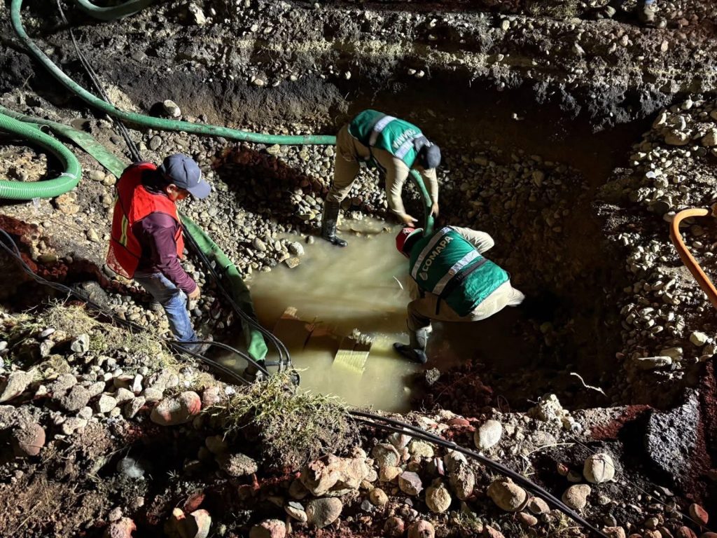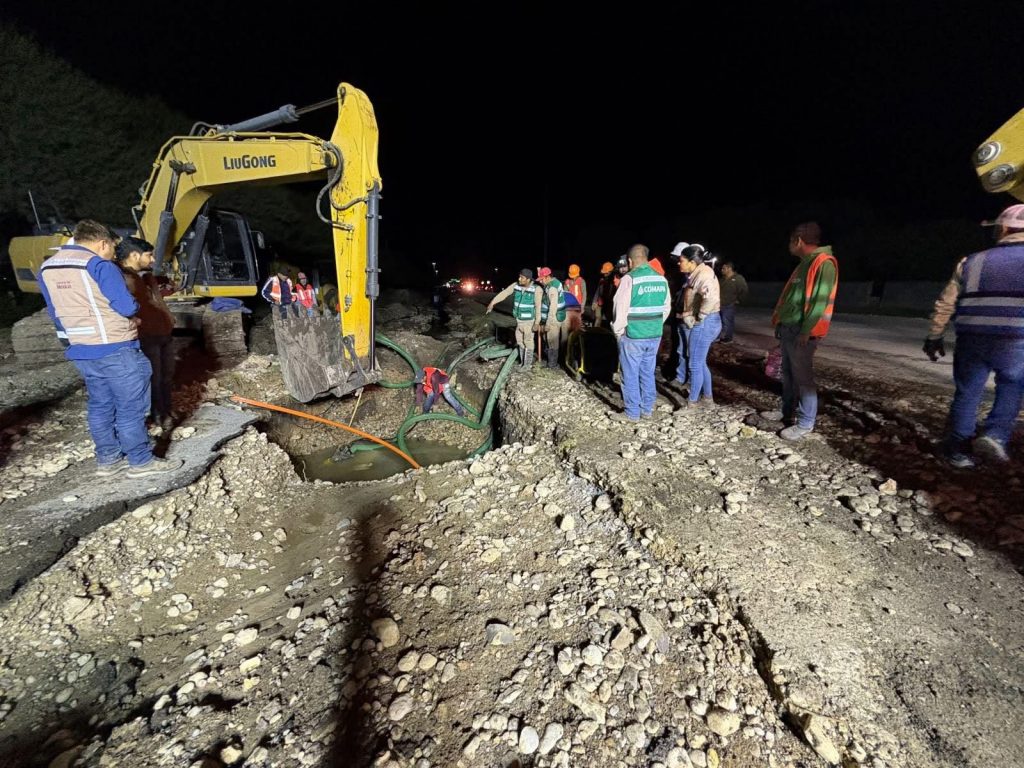 🚧 Durante los trabajos de excavación de la segunda línea del acueducto, se dañó un punto de la línea en operación, provocando una fuga que hizo necesaria la interrupción del rebombeo.