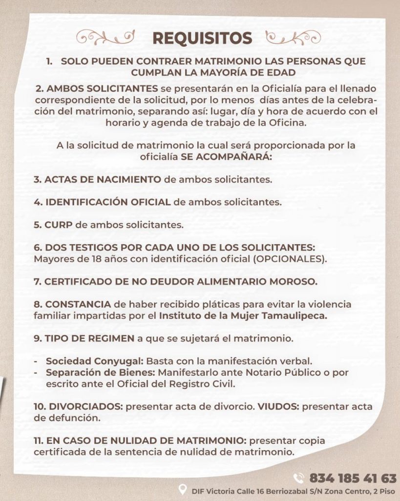 Cd. Victoria, 16 de febrero de 2026. – Con el objetivo de fortalecer la unión familiar y brindar certeza jurídica a las parejas victorenses, el Sistema DIF Victoria informa el inicio del registro para la campaña de Matrimonios Colectivos.