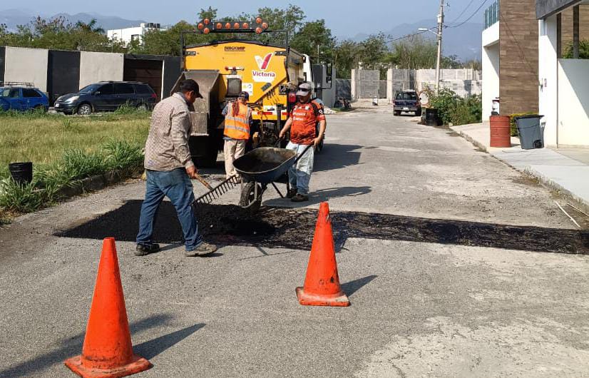 Cd. Victoria, 9 de marzo de 2026.- Como lo anunció el alcalde Eduardo Gattás Báez, el gobierno de Victoria extendió el programa de bacheo a toda la ciudad, logrando rehabilitar en la primera semana de marzo 630 metros cuadrados de carpeta asfáltica en diversos sectores de la capital.