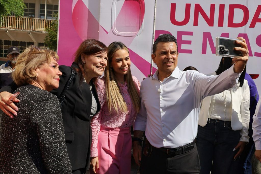 En la apertura de la unidad móvil instalada en la explanada del DIF, participaron la dirigente del Sindicato del Municipio, Laura Limón García; Dr. José Flores Romero, Jefe de Programas Preventivos del IMSS; y Zelenny Rodríguez, directora de la Jurisdicción Sanitaria No. 1.