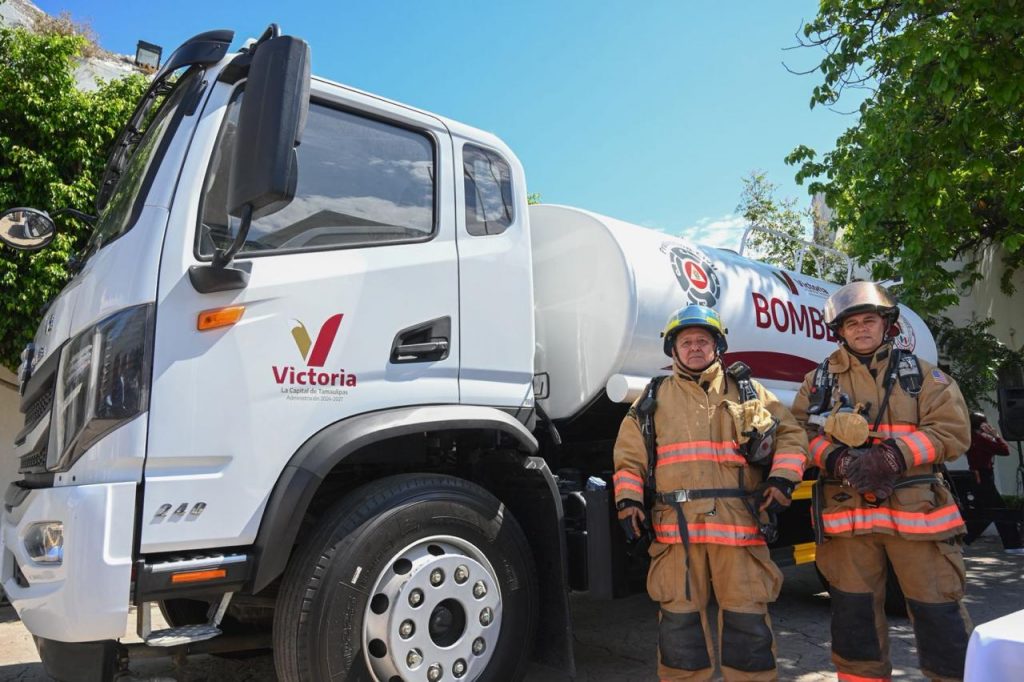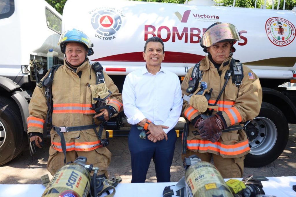 Cd. Victoria, 7 de abril de 2026. – El presidente municipal de Victoria, Eduardo Gattás Báez, entregó este día equipo especializado y camión cisterna a la Coordinación de Protección Civil y Bomberos para la atención rápida y eficiente de emergencias o siniestros que pongan en riesgo a la población.