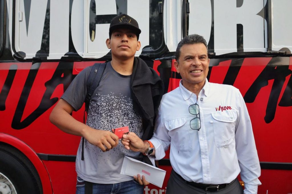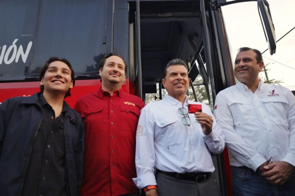 En punto de las 6 am, arribó en compañía del Jefe del Departamento de Participación de la Juventud Benjamín Martínez Ramos y el vocero de Jóvenes de Victoria Abraham Gattás Rodríguez, a la parada oficial de la unidad para hacer entrega de la tarjeta digital a los alumnos beneficiados.