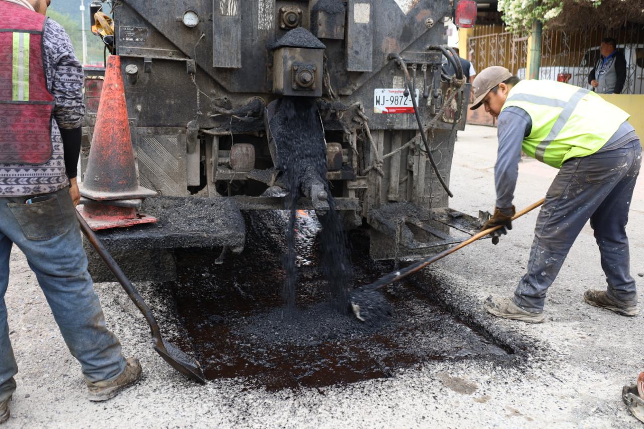 Intensa jornada del Plan Emergente de Bacheo en la calle Matamoros.
