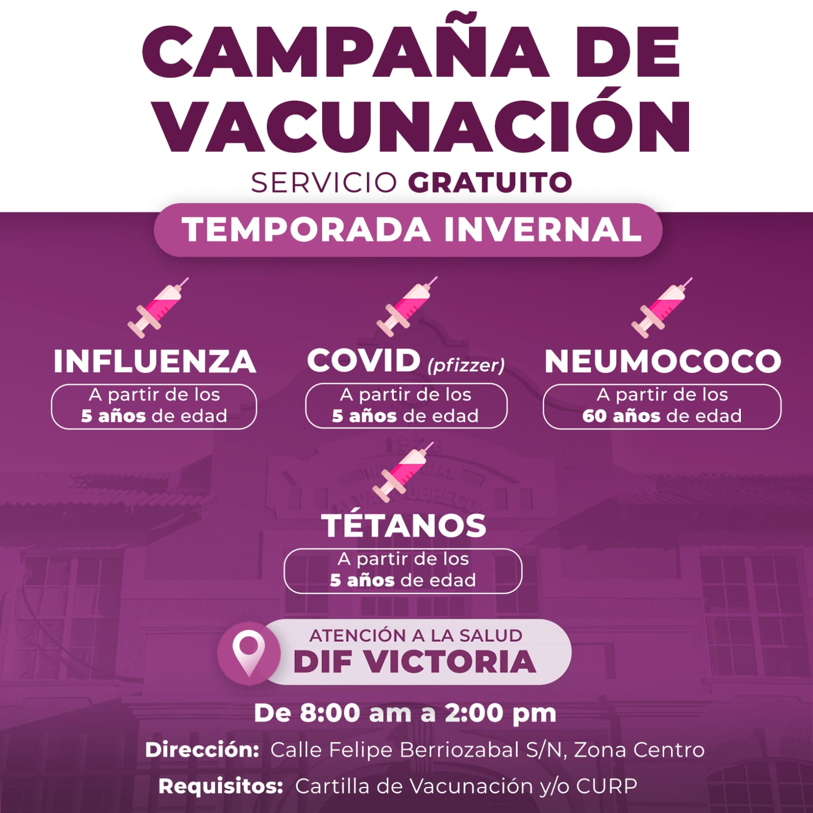 DIF Victoria invita a la ciudadanía a su Campaña de Vacunación Gratuita por temporada invernal